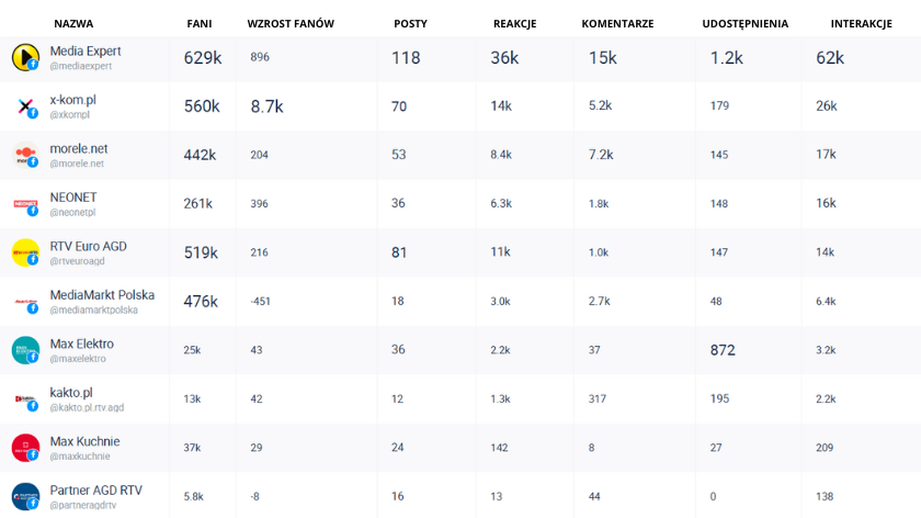 Morele.net z wynikiem 17 tys. interakcji zajęło trzecie miejsce w zestawieniu. Choć liczba postów była niższa niż w przypadku pozostałych firm na podium (53), sklep zdołał osiągnąć solidny wynik w zakresie zaangażowania – średnio 320 interakcji na post. Mimo umiarkowanego wzrostu liczby fanów (204), komunikacja tej marki jest na dobrym poziomie.